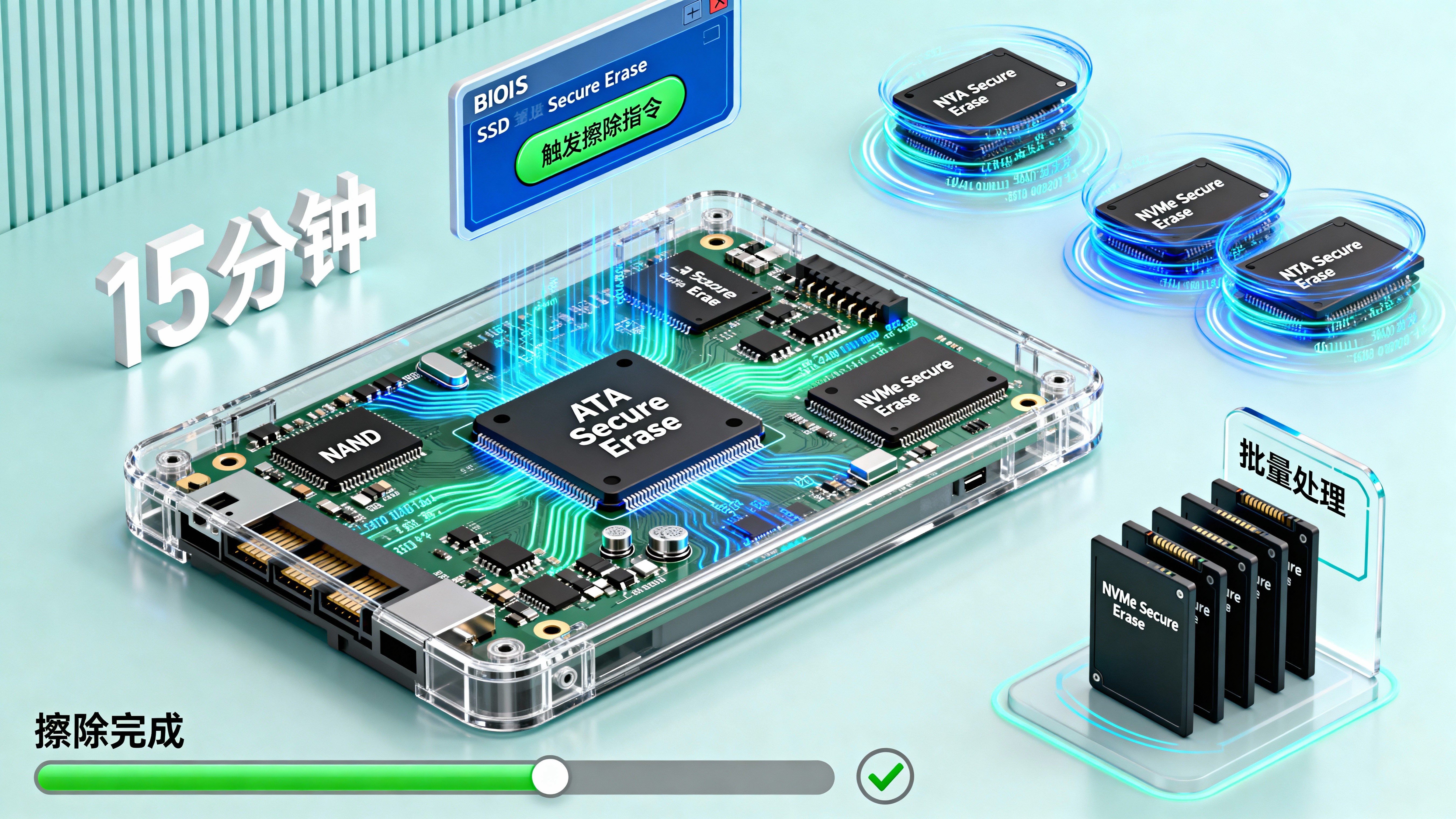 • 具体流程:通过 BIOS、专业工具触发固件指令→硬盘自检并执行擦除→完成后返回成功信号(部分工具支持生成报告)。