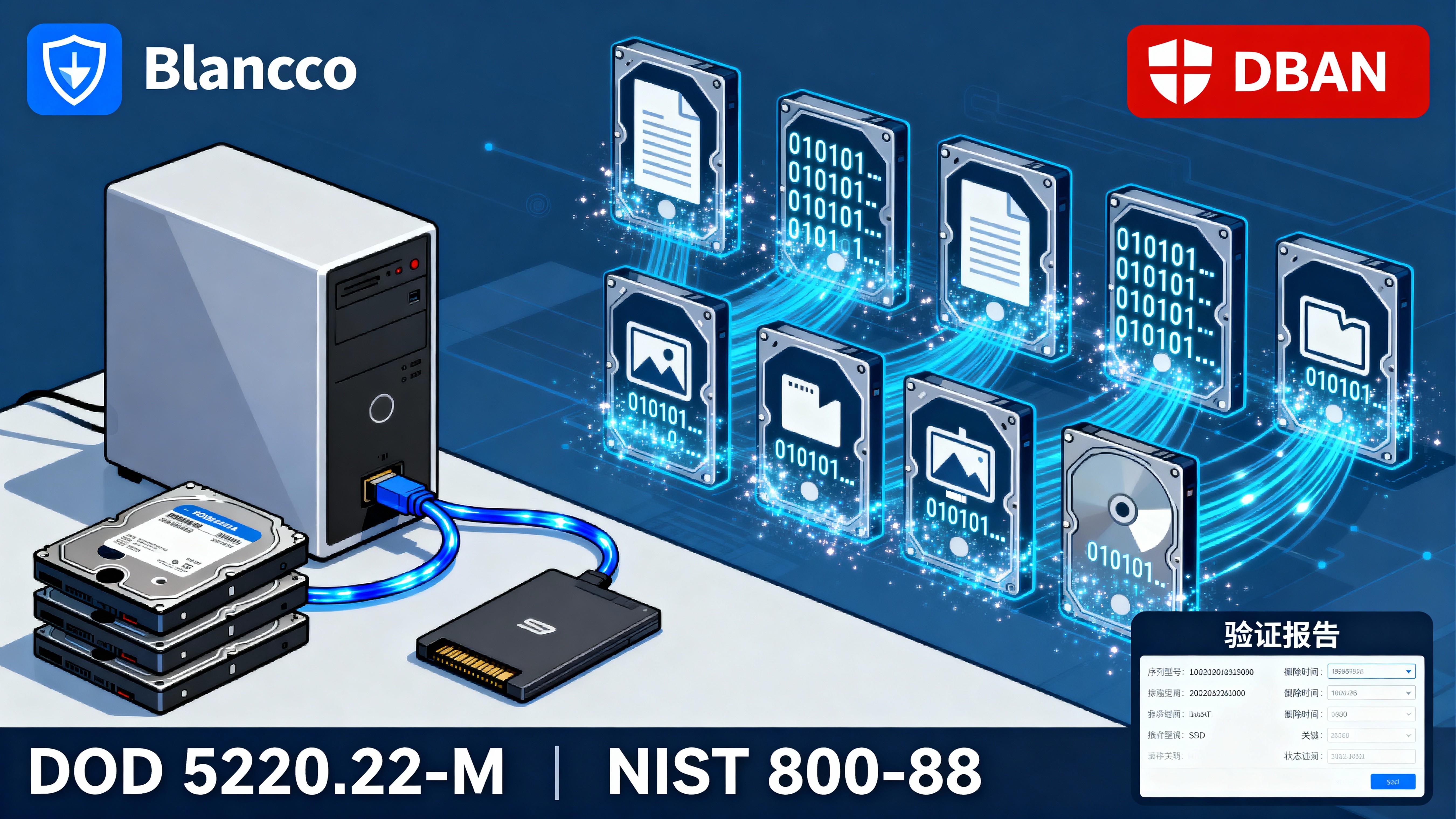 • 操作逻辑:通过专业数据擦除软件(如 Blancco、DBAN、Eraser 等),向硬盘扇区写入无意义数据(0、1 或随机码),覆盖原始数据痕迹,符合 DoD 5220.22-M、NIST 800-88 等国际标准。